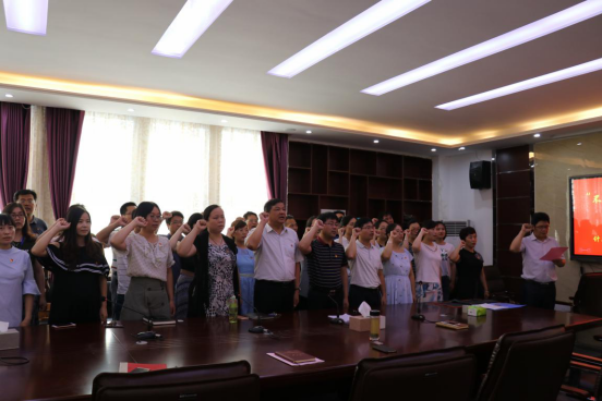 重温入党誓词是加强党性修养、信守对党承诺、表明对党忠诚的具体行动。活动中,15vip太阳集团经理何宗耀带领全体教工党员,面对党旗,举起右手、握紧拳头,庄严宣誓,重温了入党宣誓时的庄严承诺和坚定决心。公司党总支书记李宝宏强调,本次活动按照公司党委组织部《关于在“七一”期间认真组织开展以“不忘初心、牢记使命”为主题的支部党日活动的通知》,公司党总支采取为党员过集体“政治生日”的方式庆祝党的生日,并要求,公司全体党员教师在今后的工作中,要坚定理想信念、牢记共产党员使命、做好表率作用。