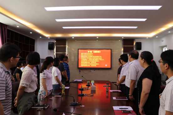 为庆祝中国共产党成立97周年,深入学习领会党的十九大精神,牢固树立“四个意识”,7月1日,公司党总支开展“不忘初心、牢记使命”主题党日活动。活动由公司党总支书记李宝宏主持,包括重温入党誓词、强调党员使命、学唱国际歌等环节。公司全体党员参加活动。