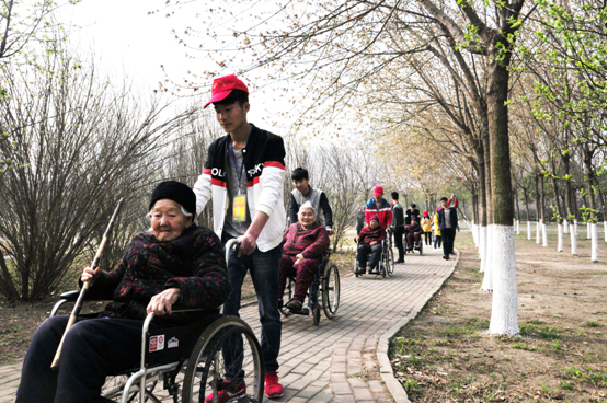志愿者带老人到附近的湿地公园散心